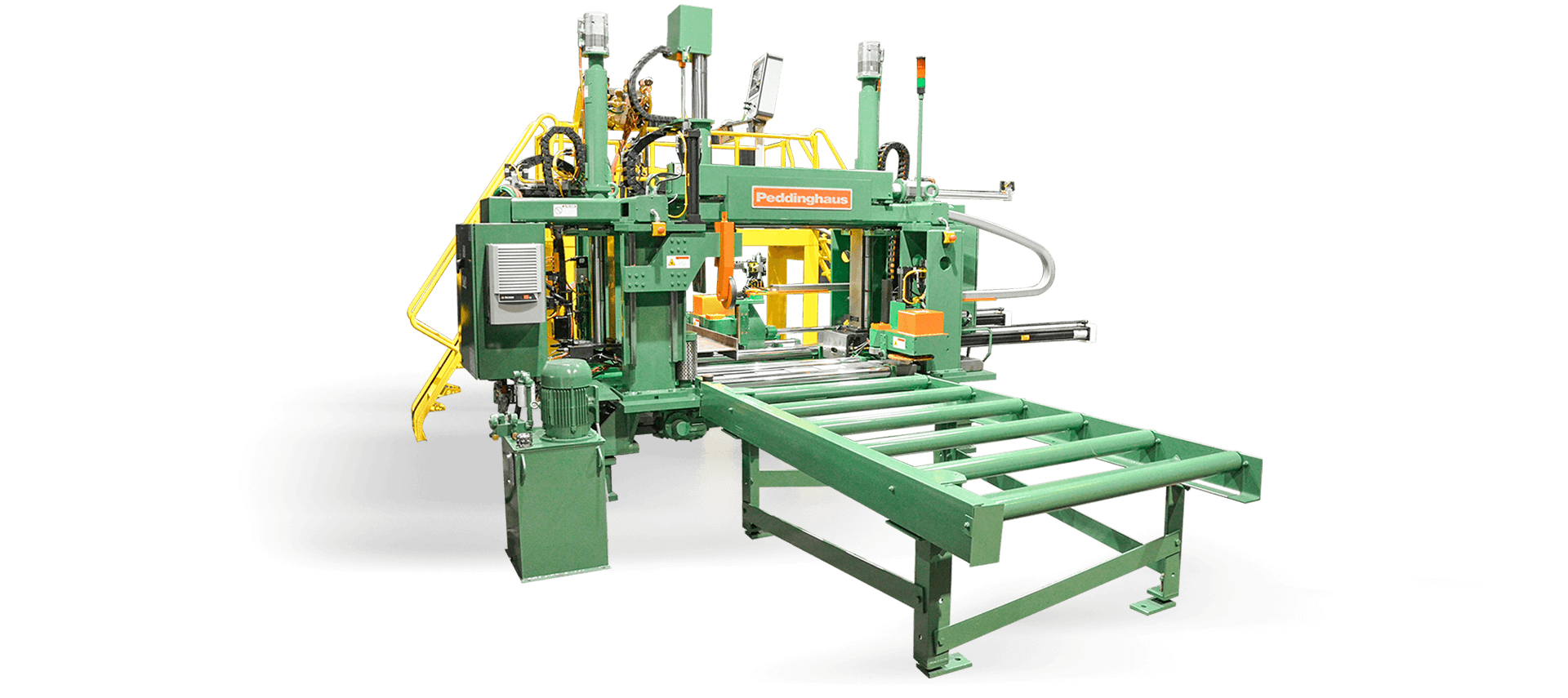 Achieve miter and straight cutting on new levels with the ABCM-1250 CNC beam coping machine. Place in-line with any of Peddinghaus’ automatic sawing systems and separate beams in record time.
