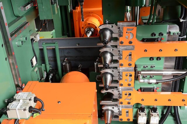 Automatic tool changing comes standard on the Peddi XDM-630, eliminating the need to halt production for manual tool changes. All three spindles each support up to five tool changer stations.